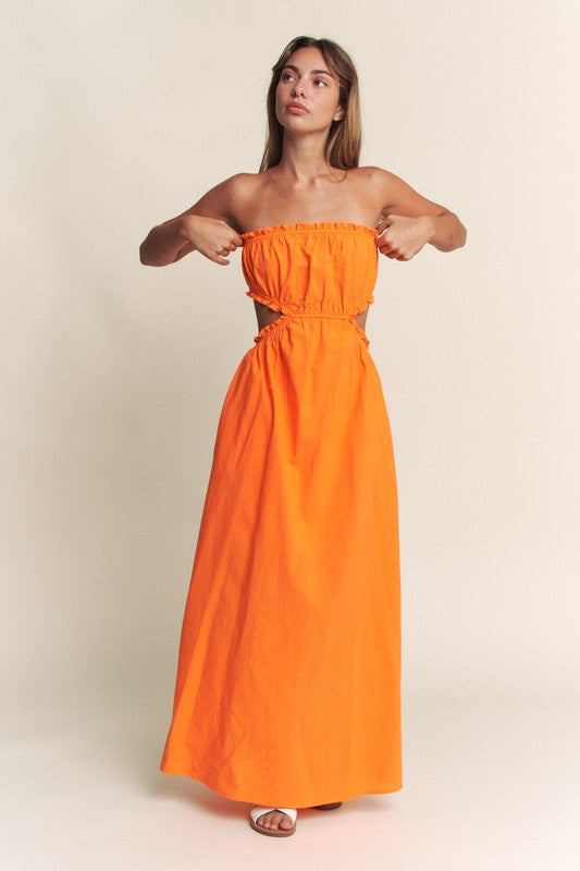 - Orange Eyelet Cut Out Tube Maxi Dress